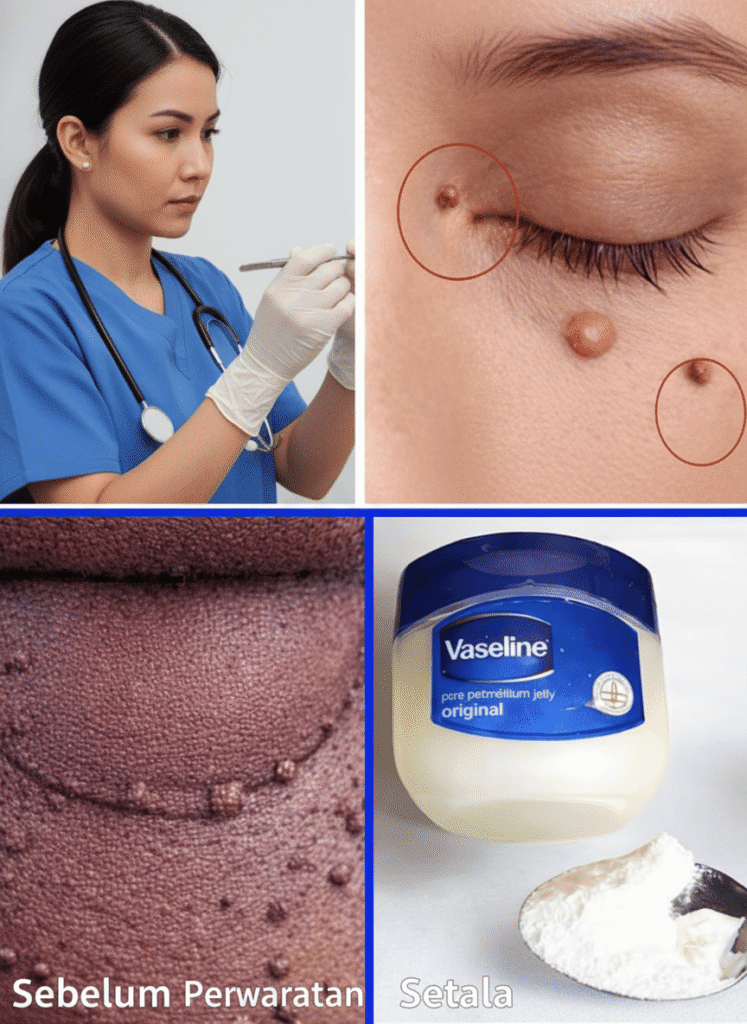 | Milia | Mutiara putih keras, tidak merah | Keratin terperangkap | Eksfoliasi lembut, ekstraksi profesional |
